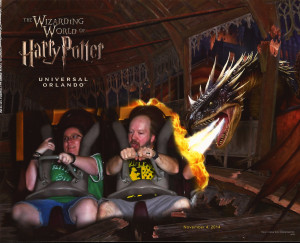 We took our seats on the motion ride and…well, I don’t want to give away any surprises. I will say the Quidditch scene was my favorite, and as you can see in the photo above, we found another dragon! The ride was much like the Escape From Gringotts and the Spiderman ride- a mixture of animatronics, projections, moving cars, wires, mirrors, pyrotechnics, and other great effects. I would love to watch the movies this way!