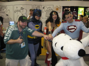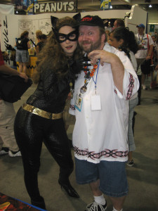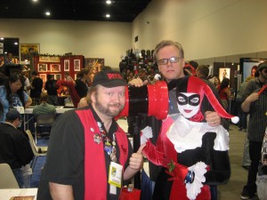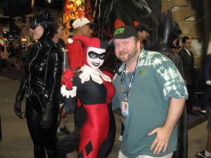 If I’m at a con and can have my picture with a cosplayer, and the creator of that character I totally geek out. It’s even more awesome when we accidentally wear matching outfits! (That’s me at the SDCC with a Harley Quinn cosplayer and Harley Quinn co-creator Bruce Timm!)
