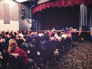 Animation, live action, superheroes, sci-fi, humor, drama- many different types of entries with varying skill levels were entered this year from all over the world. Some of my favorites were A Special Day, Captcha, Monkaa, Lapwing, Batman and Jimbo, Breakfast With Clark, Comic Potential, Dark Therapy, Fallen Heroes, Light Games, Grayson: Earth One, Little Heroes, This Is Joe, Wonder Woman fan film trailer, and Boy Wonder. Some winners were in attendance, and others sent in a video acceptance speech- and some were funny themselves. I was upstairs in the sound booth running the program that cued up each video while Tim hosted the awards.