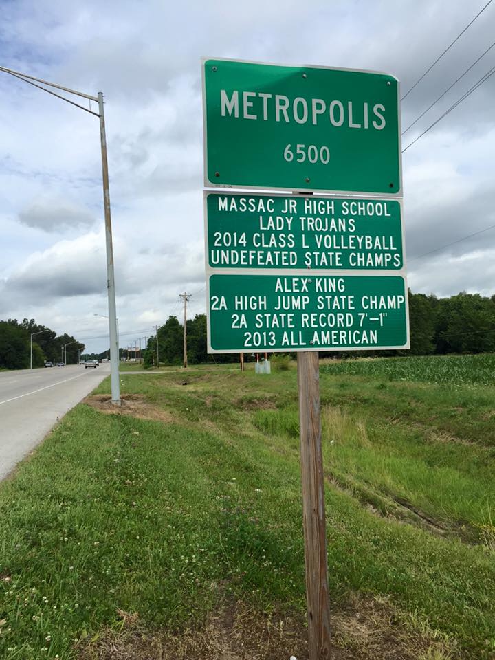 If you come in on 24 and take the Metropolis exit you’ll see the bigger sign as you head into town on E 5th Street (which is also 45) and pass Fort Massac State Park.