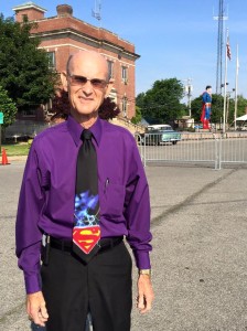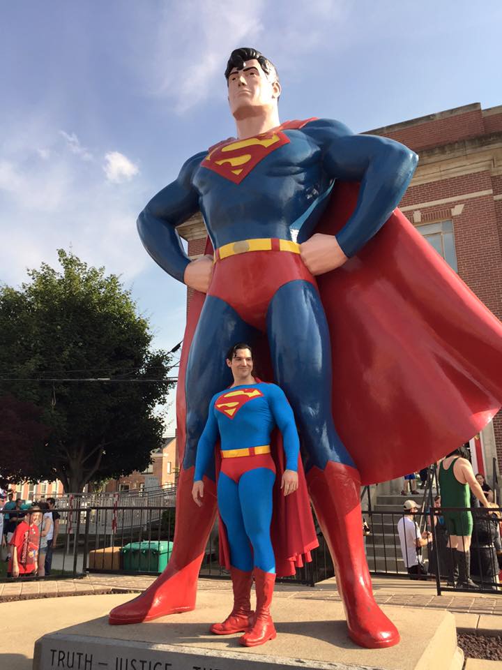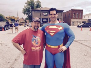 The Superman Celebration is an annual festival celebrating the Man of Steel. This was the 37th Annual Metropolis Superman Celebration. It’s more of a small town “strawberry festival” with a Superman theme than a typical comic convention. Even though the majority of it takes place within a few city blocks, it truly is a city wide event- which makes it very unique. It’s also become a sort of family reunion for many. The town has it’s own official Superman of Metropolis– Josh Boultinghouse. Nope- no padding on this 6’2″and 235lbs Kal-El, and he’s as nice and friendly as you’d expect a Kansas farm boy like Clark to be. This strange visitor from another planet is actually a Texas native, and has been Superman here each year since 2008.