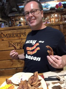 They were happy to keep Lex in one of their offices while we ate. Lambert’s has become a tradition, too. We try to stop in any time we’re that way on I-55 heading to Metropolis, Cape Girardeau, Chester, or St. Louis. Just look for the green signs for the Home of the Throwed Rolls.