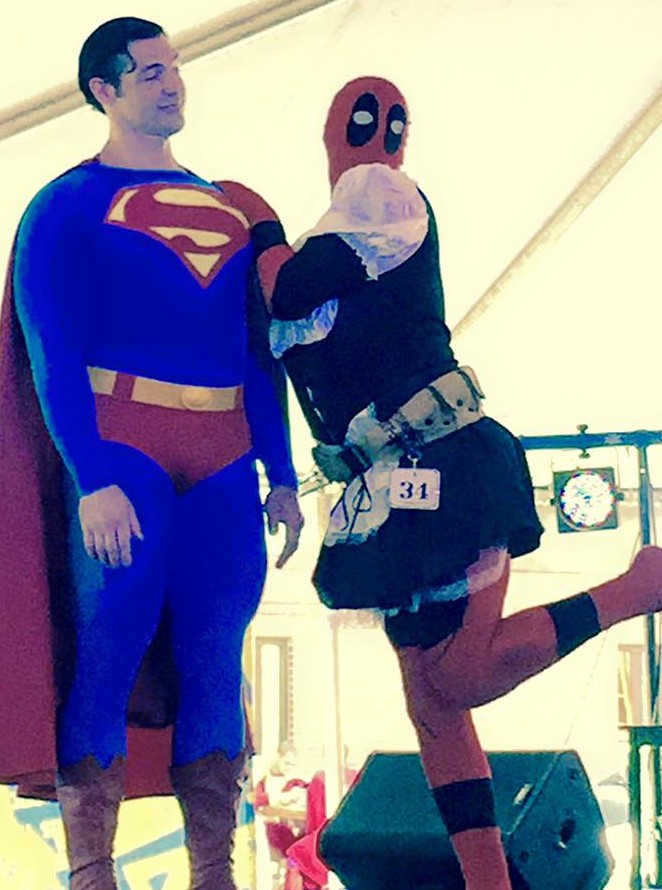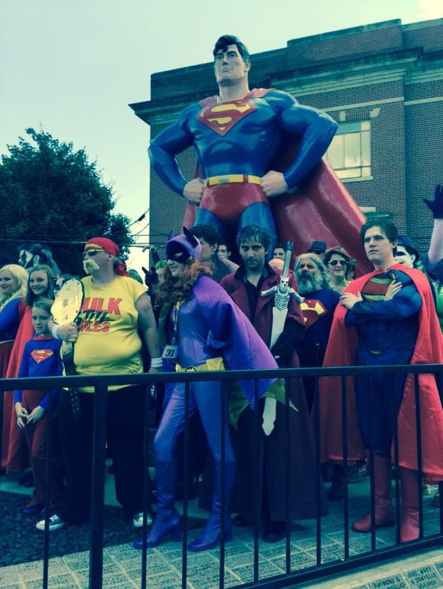 The parade ended up stopping in front of the Superman statue for a group photo before the big costume contest. Not everyone in the parade participated in the contest, but there were still several entries again this year. Moving the costume contest to Sunday has really helped keep people in town and the celebration party going.