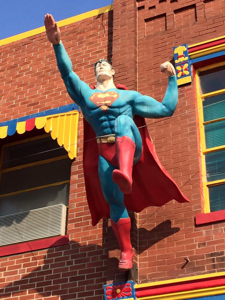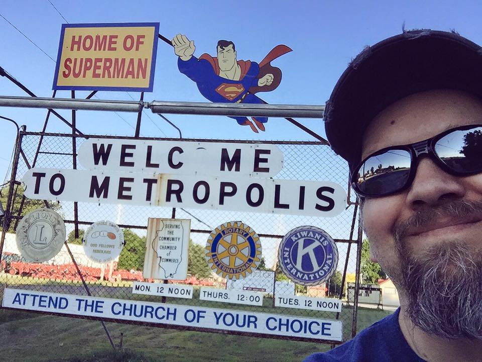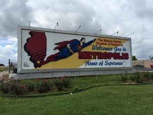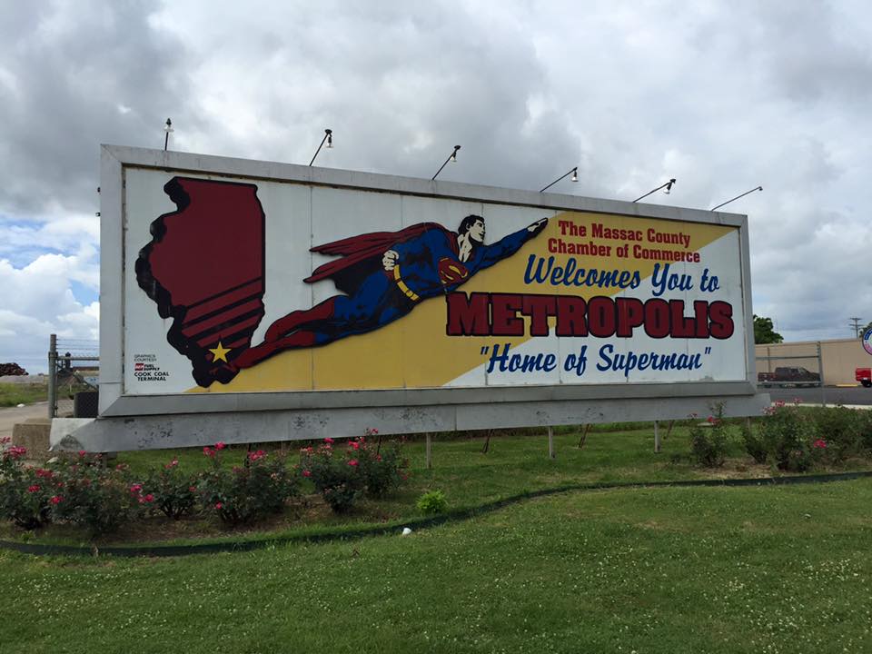Metropolis is a small town in southern Illinois- in fact, you can’t go any further south without driving into the Ohio River– which my friend Kevin Williams and I almost did one night thanks to a dark and deserted downtown Cairo, IL and bad on-line directions…but that’s another story.