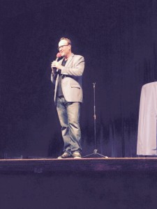 Backtracking a bit- on Saturday night comedian Scott Long performed at the Baymont Theater. It was a benefit for the Save The Massac Theatre, which is a non-profit organization raising money to restore the historic Massac Theatre in Metropolis. Scott was selling tees and CDs and donating a portion of the sales to the Massac, so I bought a CD for me and a tee for Timmy. There was a silent auction going on as well.