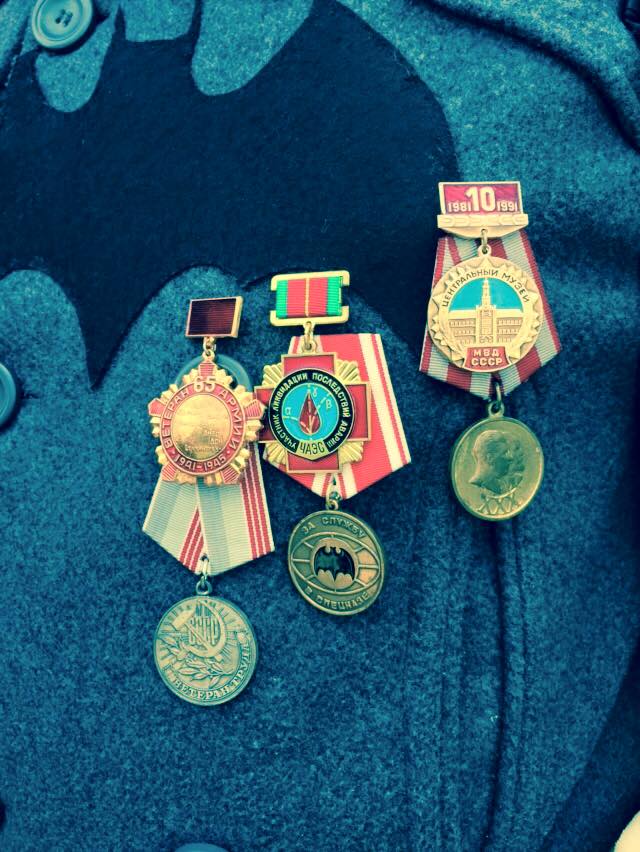 I was супер впечатление (super impressed) with the attention to detail on the costumes- real Russian patches and medals, but I think I was even more impressed that anyone would/could wear wool in the summer heat of Metropolis! I mean, just look at that fur cap/cowl- unreal. When I got back home I had to track down and order some of the patches and medals for my bat-collection.