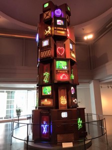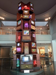 There was a large “Vide-O-belisk“ on display in the middle of the lobby as we entered. It was full of neon and flashing video images on a variety of styles of TV monitors. The 19ft tall sculpture by artist Nam June Paik was commissioned by the Brooks in 2002. It’s a very impressive structure. The gift shop was behind the large glowing obelisk. We did a bit of shopping there before we left, but they were out of “The Art of Video Games” book. I did leave my name with the girl working behind the counter and the manager gave me a call a few days later to let me know they were in. Picked it up after we had visited the Pink Palace Museum the following weekend.