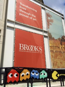 I have been wanting to take Nicki to see “The Art of Video Games” exhibit at the Brooks since I heard about it this summer, and finally had a free weekend we weren’t traveling or that I had to work. One Saturday morning last month we drove over to Overton Park in the midtown section of Memphis, TN. Little did we realize that there was a concert going on at the Levitt Shell behind the Brooks Museum. That and the milder weather we were having in August packed the park and the zoo- which is where we ended up having to park. Once inside the museum it was a lot less crowded, which is kinda what I was hoping for.