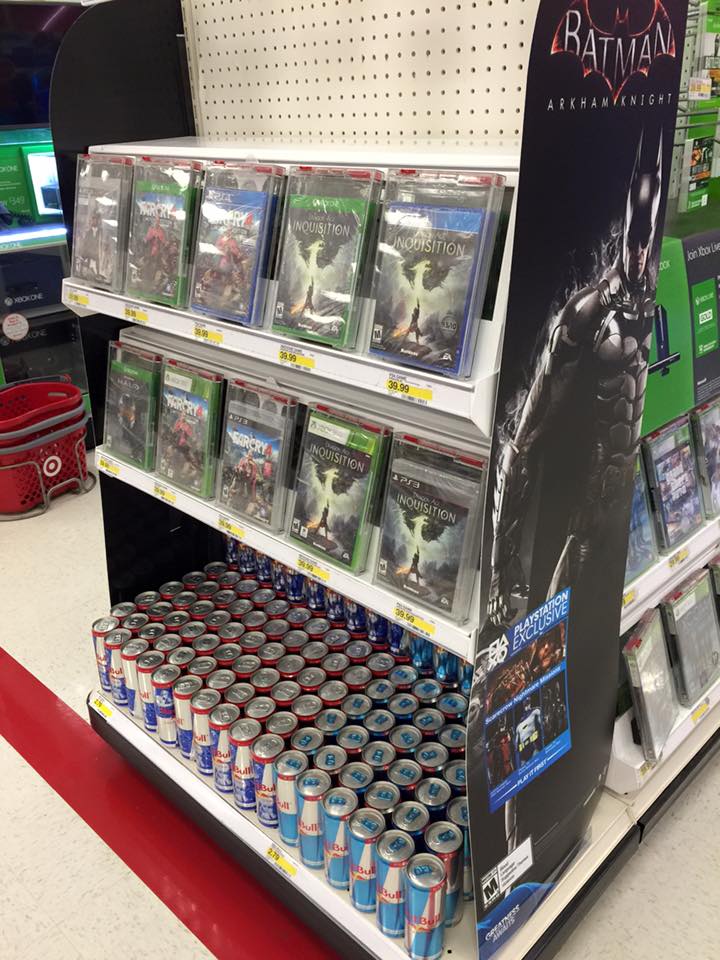 Not part of the gaming exhibit, but a brilliant end cap display at a local Target we saw later in the day- video games and energy drinks together…just genius! well played, Target. 😉