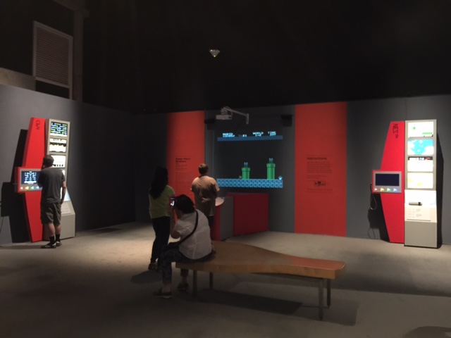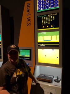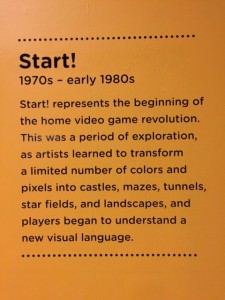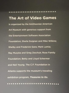 There were large signs on the walls around the exhibit describing the different eras of game development and other historical info. The exhibit had several pieces of game art on display in a few groupings, but not as much art as I had hoped to see. Would have liked to see a lot of the old box art for some of the classic games compared to some of the new illustrations which has evolved with the games. Didn’t see a mention of the “E.T.” game and it’s “art” or the lack of it, either. Those were the only real disappointments I had.