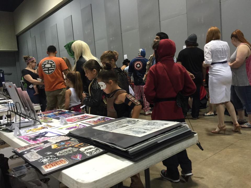 I’ve done the San Diego Comic Con a couple of times. Had a blast and did well there, but it got very pricey with travel booth space, parking, and hotel. There was a time that smaller shows seemed to be more profitable for me. Did great at a small show in the middle of no-where Mississippi we nicknamed “DirtCon” because it was held in an old rodeo arena with a compacted dirt floor. Nicki and I had a blast, and it was a short drive to a one day  show- free table space, less than a tank of gas to get there, and no hotel cost. The past few of those smaller micro-cons haven’t done so well for me. Could be my product mix, could be the shows not advertising well, or just bad timing. I’ve actually gone in the hole accepting free table space at a couple. At all shows I’m seeing more and more TV/movie celebs being brought in. They charge for autographs and photo ops and there can be huge queue lines. That’s what’s being promoted as a “comic con”, even though it’s probably more of a fan-fest, pop culture con, media event, or celebrity zoo. Now even some of the comic guests are charging for autographs and photo ops. Between paying for the celebrity encounters and higher admission prices many attendees just don’t have the $$$ to spend once inside the con. Artists Alleys also seem to be growing smaller, pushed further away from the action, or hidden behind HUGE booths- although I am seeing some artists go bigger and bigger with their own displays. A 2’x6′ roll up banner behind your table just isn’t going to cut it these days. Displays and merchandise have got to be vertical- it can’t just sit out on your table and get noticed. Artists just can’t sit back and hope people will throw money at them. Most have to become a salesman (or saleswoman) and pitch their work to passersby.