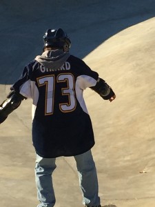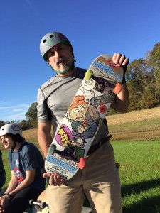 Me, well- it’s been about 35 years since I’ve been on a skateboard, other than doing some straight aways with my nieces and nephew about 10 years ago. The skateboard on the right is my original board from back in the ’70s. The one on the left is the loaner board Greg let me use for the day. To say boards have changed over the years is an understatement.
