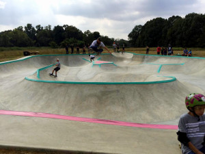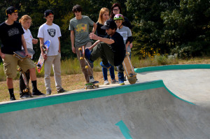 There isn’t a permanent sign up to tell you where to turn yet- you have to keep an eye out for the dirt road once you pass Conger Park, and the skatepark is off the road a bit.