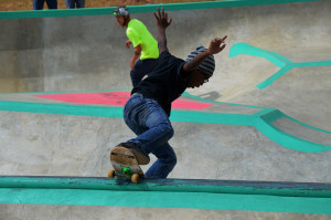 This park is set up to where newer skaters and more experienced skaters can both enjoy it. (That’s my lil’ buddy Zee from Area 51 Ice Cream on the right.)