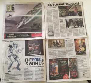 So, what did I think of Star Wars: The Force Awakens..? Well, without any spoilers I can honestly say I enjoyed it and thought it was a fun movie. Was it my favorite Star Wars movie..? No. Was it perfect..? For me, no- but that doesn’t mean it wasn’t or won’t be for others. At times it felt very much like a Star Wars movie, and at other times it didn’t. Some things were great homages or familiar, other things just seemed like a bit of a re-hash, “borrowed”, and not very original to me. I felt a few actors/characters weren’t on screen enough, one character was a bit over the top, and some of the plot I just didn’t get. May have to read the novelization to fill in some blanks for me. Nicki’s read it and has already clued me in on some things I wasn’t sure about.