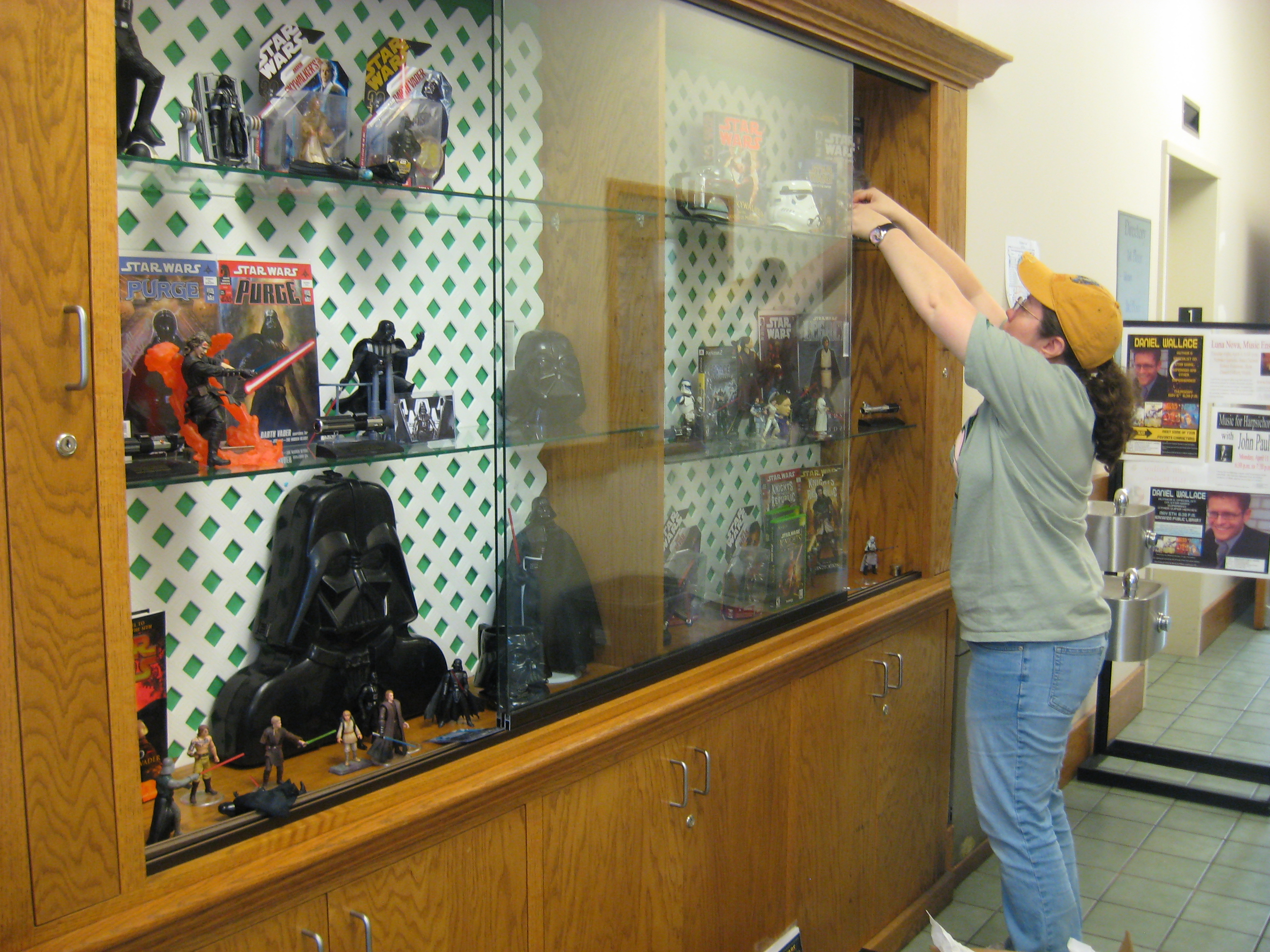 We’ve done a few displays at the Hernando Library (hockey, comics, Batman, and Harry Potter) and one was items from our combined Star Wars collections. It was to help promote Dan Wallace‘s book signing there, which also included some costumed members of the 501st and SMT for the event.