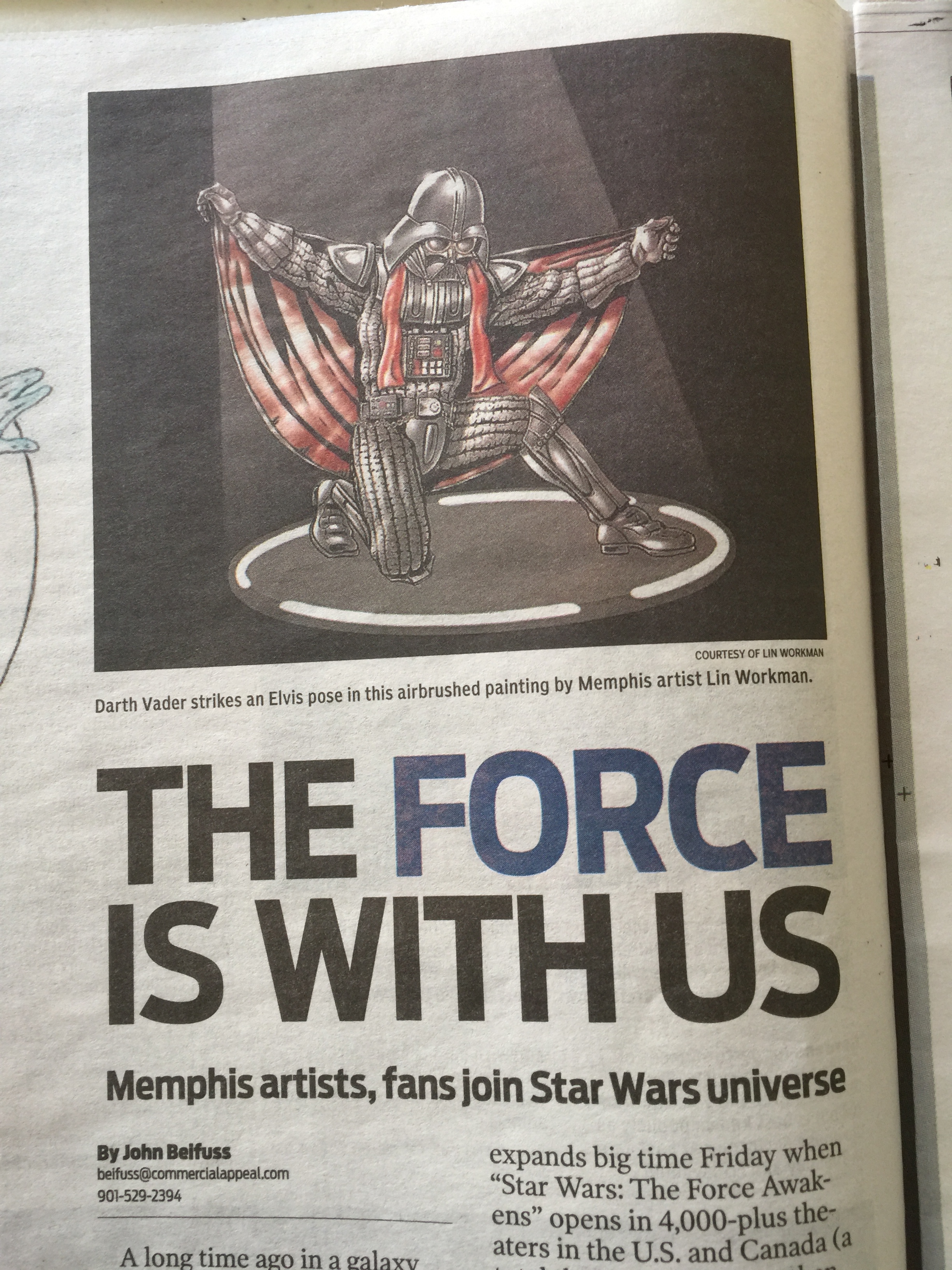 John and I, along with some other Memphian Star Wars artists, cosplayers, and fans were interviewed in this past week’s GO MEMPHIS section of the Commercial Appeal and Memphis Flyer. (You can read those stories by clicking the links below.) Lots of Star Wars love in our area.
