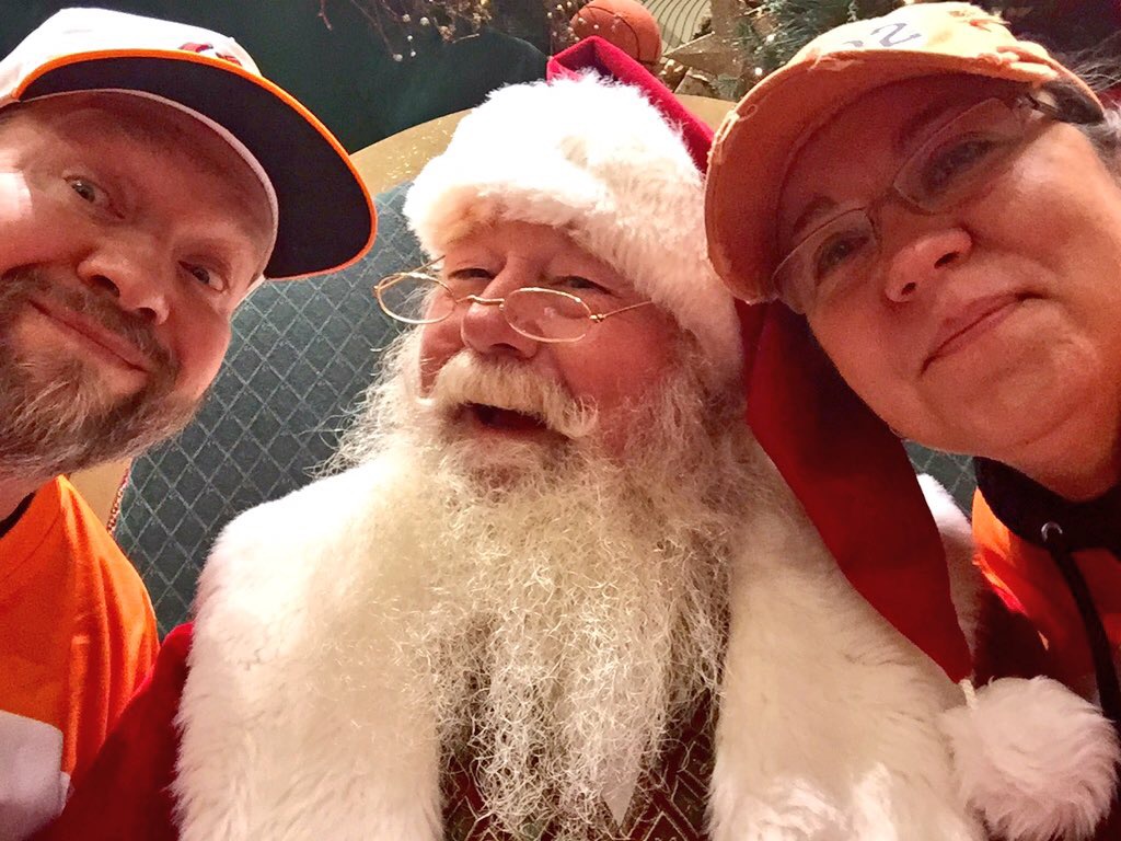 I spotted Santa downstairs and since the line wasn’t long we went to have our photo taken with the big guy. I told him I wanted a Red Ryder BB gun, and he told me, “You’ll shoot your eye out, kid.” 😉