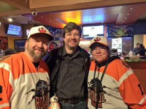 We’ve both have been lucky enough to meet many of the actors from the Star Wars movies and animation, and many of the authors and artists on the novels and comic books. One of those authors joined us Friday night to see Star Wars– the other “JJ“…John Jackson Miller.