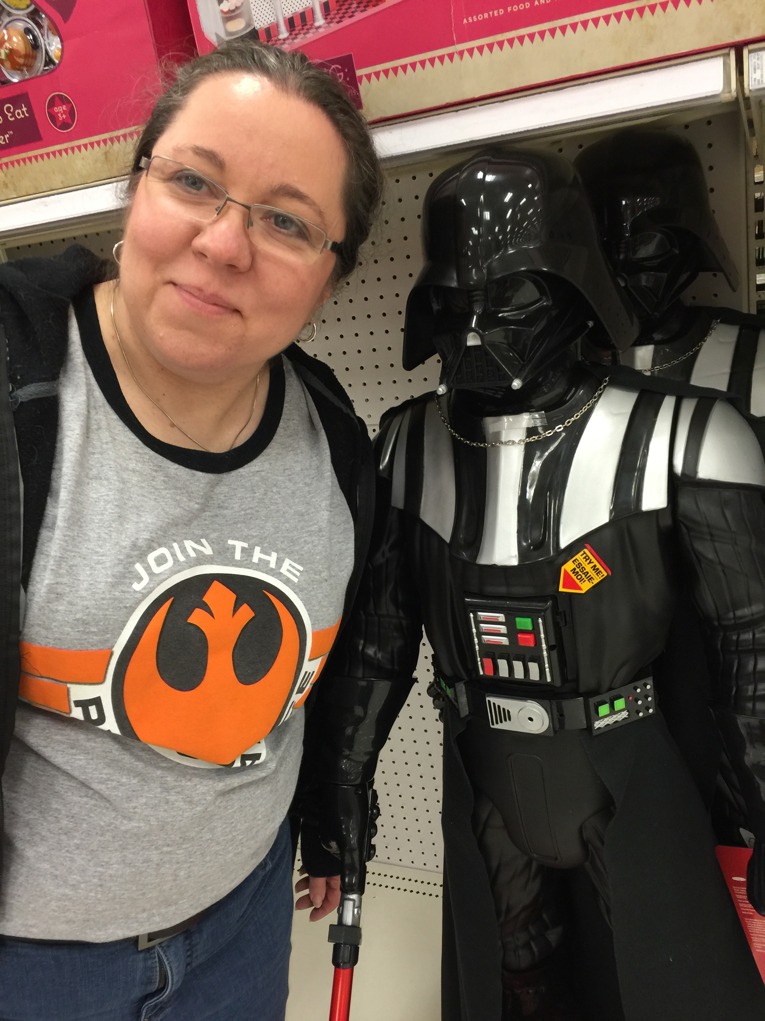 My wife and I are both fans of Star Wars, but Nicki’s a HUGE Star Wars fan and a big Darth Vader fangirl! She loves the expanded universe books, Marvel and Dark Horse comics, and has collected many toys, art, autographs, statues- and of course copies of the movies and soundtracks.