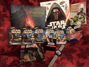 Oh, and I did get the art book and visual guide for Christmas, plus several other SW items including my new BB-8 watch, Hot Wheels cars, Clone Wars DVDs, and a LEGO TIE-fighter. We also enjoyed going shopping for Nicki’s nephews Tyler and Beckett and buying them Star Wars clothes and a lightsaber- red, of course. 😉