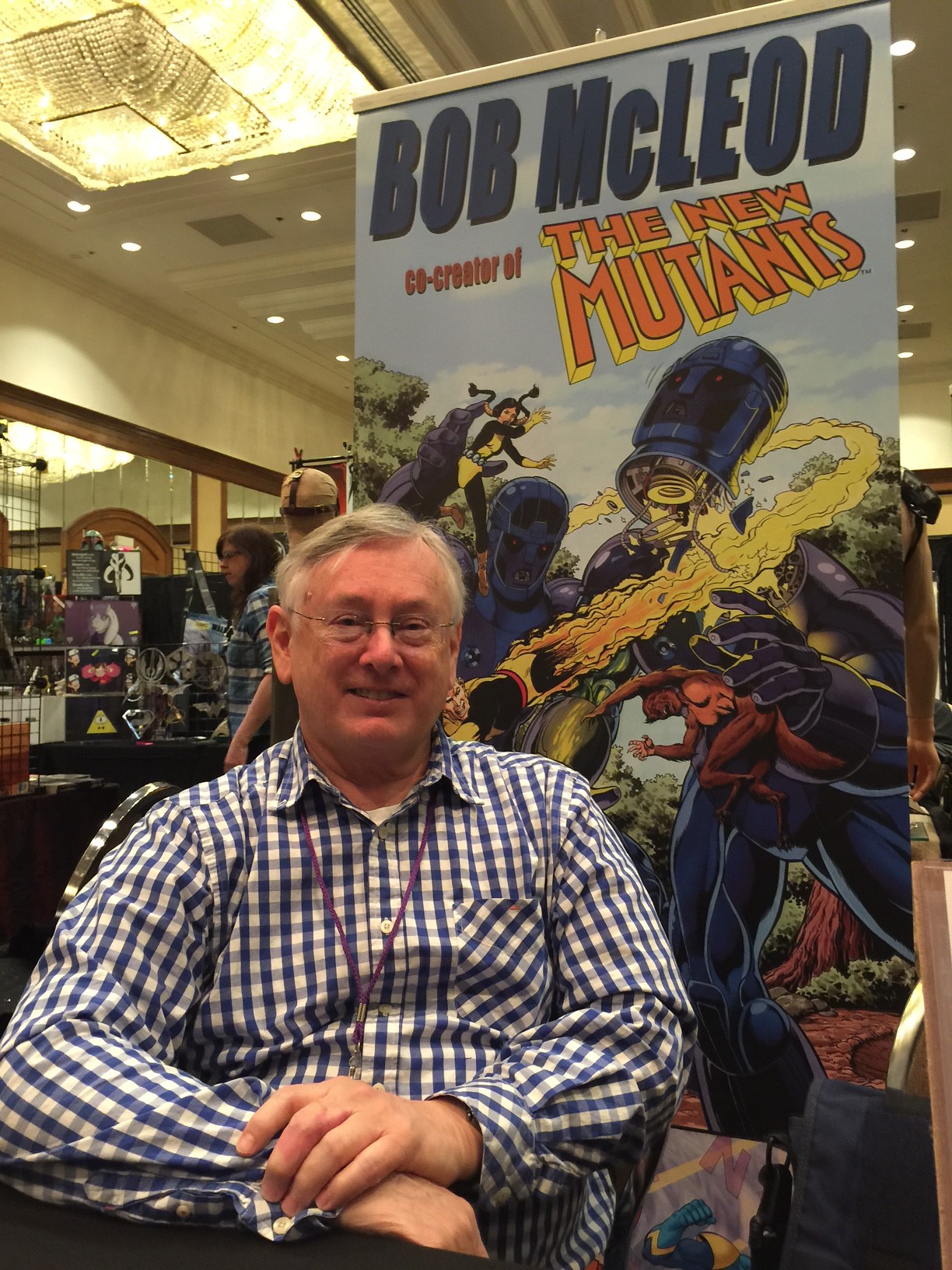 I saw Bob McLeod sitting behind his table and talking to a con attendee. It was kinda funny, because as I approached the table I could hear the fan mentioning Roy Thomas, Gary Friedrich, the “Missouri Mafia“, and a “great guy” who runs a con in Cape Girardeau, MO. “Ken Murphy and Cape-Con, right?” I asked. “Yeah!”, he replied. I told him I had been to Cape Comic Con many times before and enjoyed it- and I had even met Roy and Gary there as well. He then told Bob he would pass along his info to Ken and thanked him for the business card.