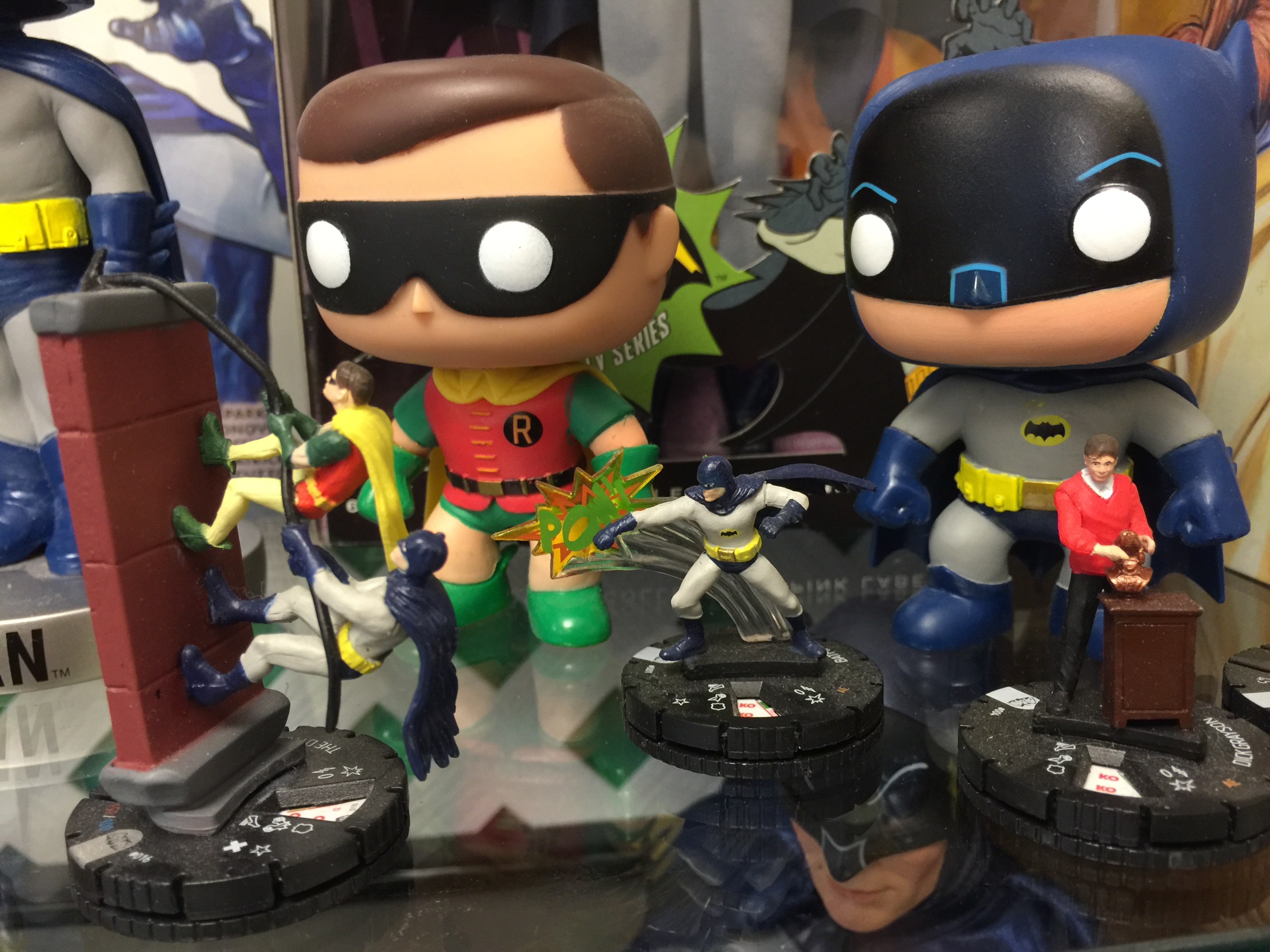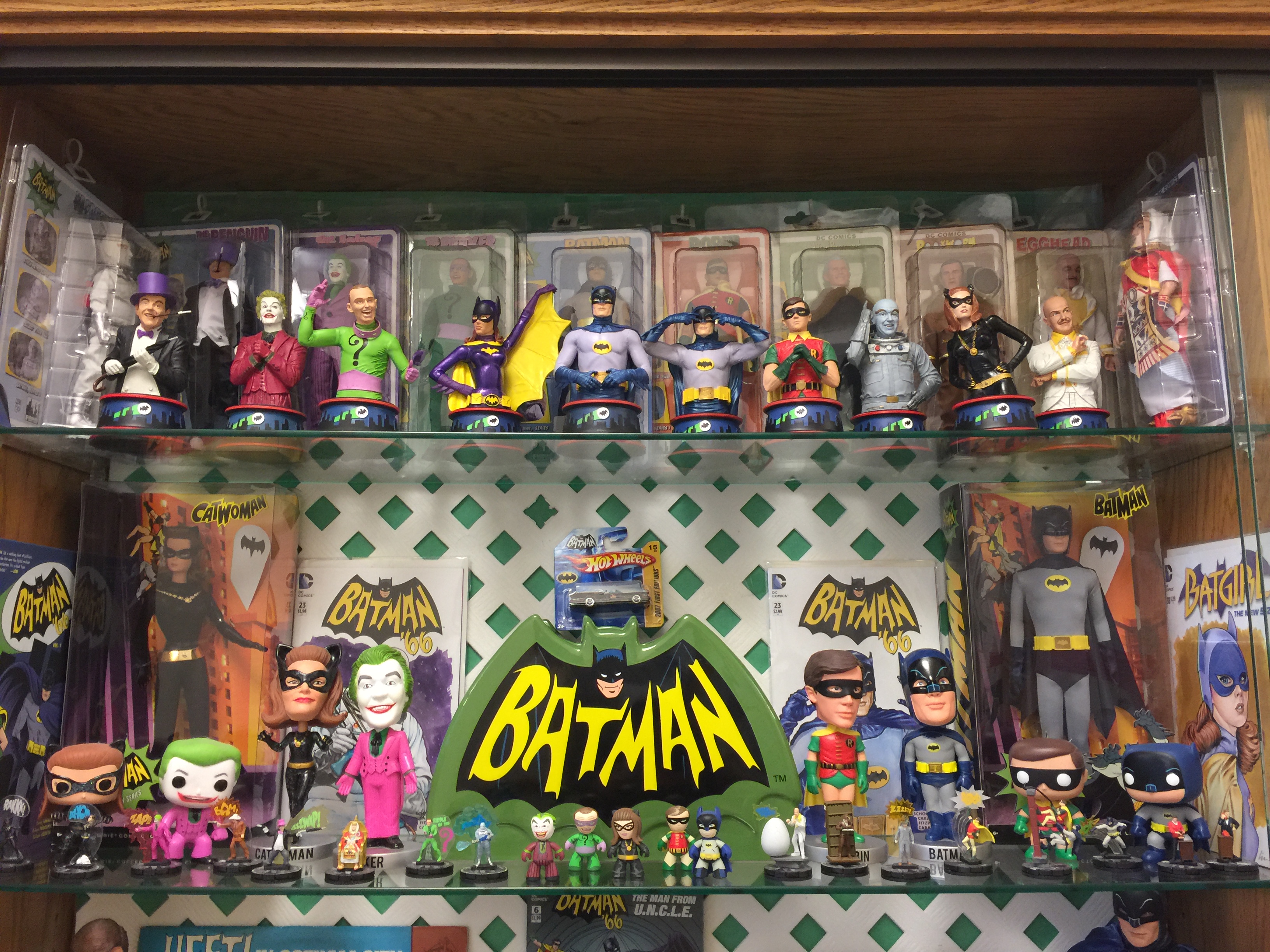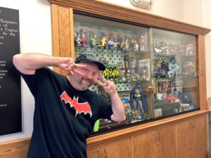 I was asked by head librarian Heather Lawson to do another display in the lobby of the First Regional Library in Hernando, MS, so I raided my Batcave collection earlier this month to do a display celebrating the 50th anniversary of the ’60s Batman TV show.