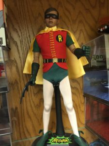 Mattel also released a Barbie Catwoman and a Ken Batman– I have both of mine on display at the library. Wish they would do Robin and Batgirl dolls as well. Speaking of Robin, on top of the Mattel Batusi figure box that’s a signed resin replica Robin batarang autographed by Burt Ward/Robin himself.