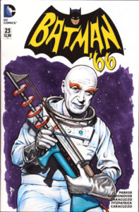 Oh, behind them are some sketchcovers I drew done in Copic markers. There’s also a Batgirl cover and an Egghead one I did on display which you can see featured a few photos down. I love drawing sketchcovers!