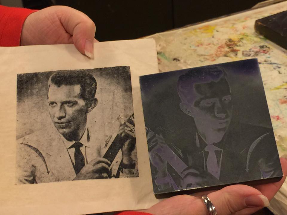 One of the really interesting things they shared with us was how they create photos plates for printing. Once done in-house using a photo, a dot pattern sheet, and a dark room, they now have this process outsourced. I’ve had to do something similar when I first started out in screenprinting back before we had scanners, personal computers, and Photoshop. Yeah, that was a long time ago when dinosaurs roamed the Earth…