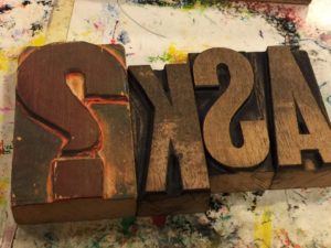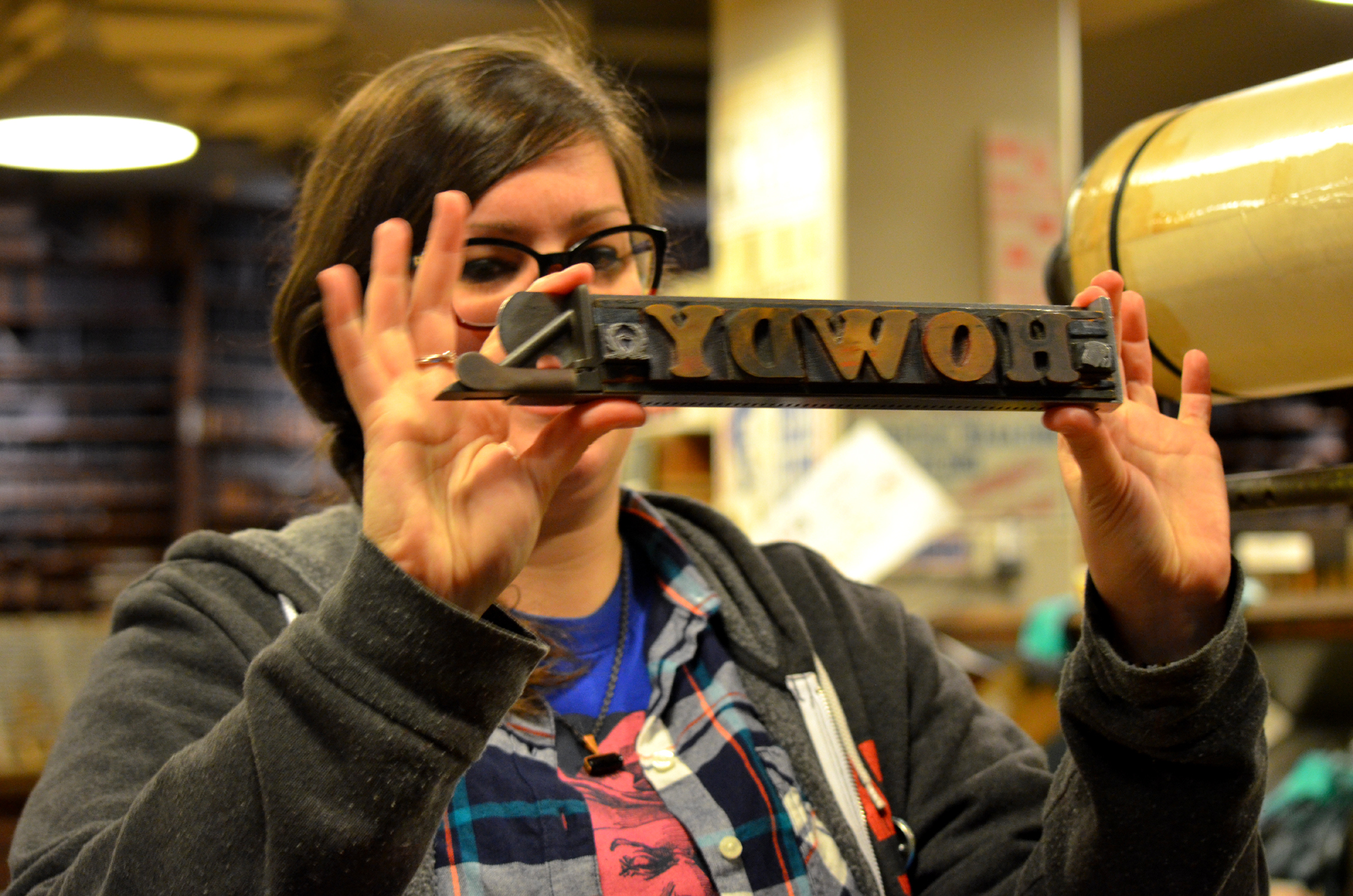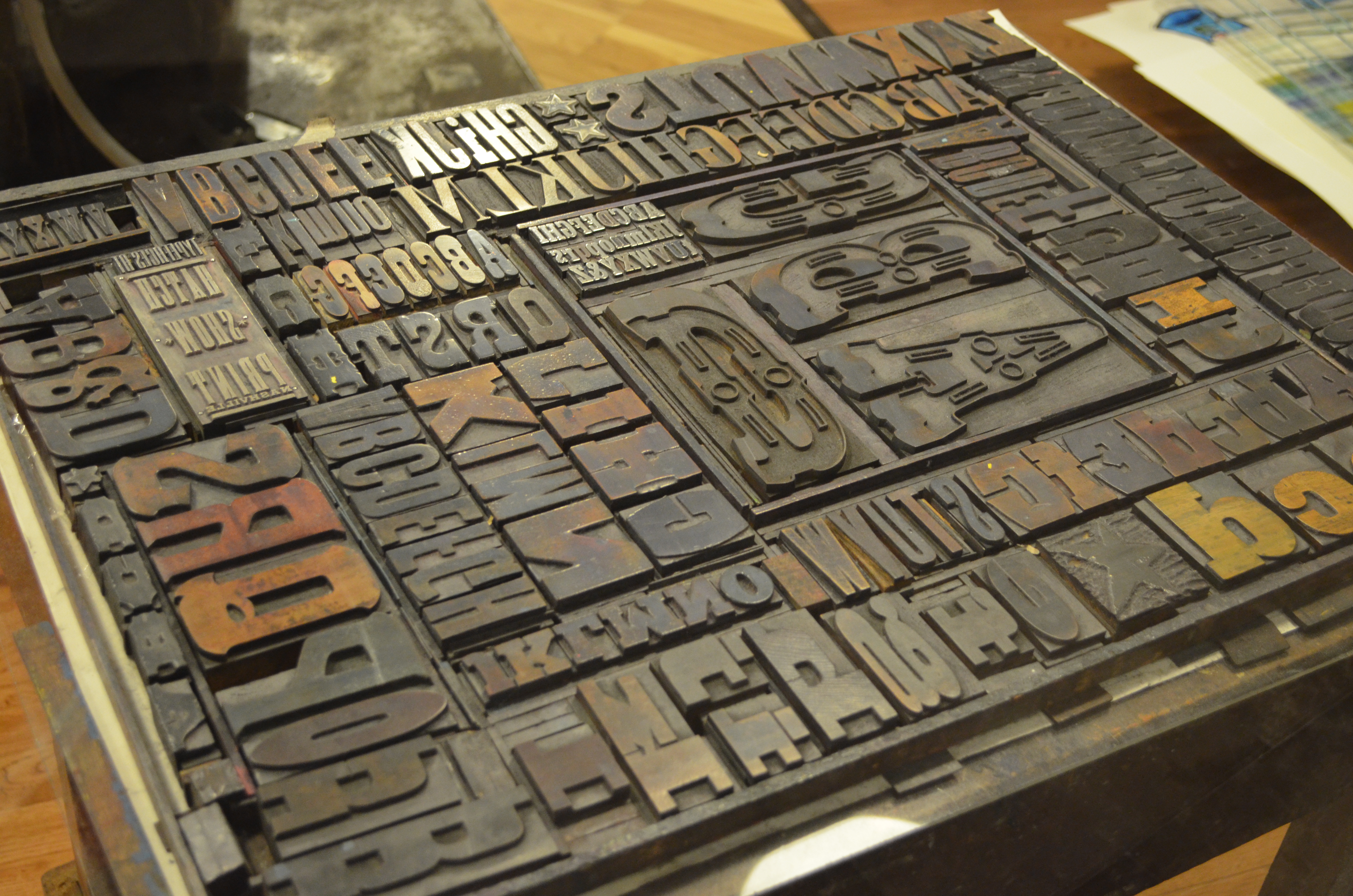It was great to actually hold some of the lettering blocks, and see the hand-carved individual fonts up close. Since each is made by hand, and since some wear and/or aging can occur, each letter has slight differences from the other letters like it. This can create a unique look for this type of printing.