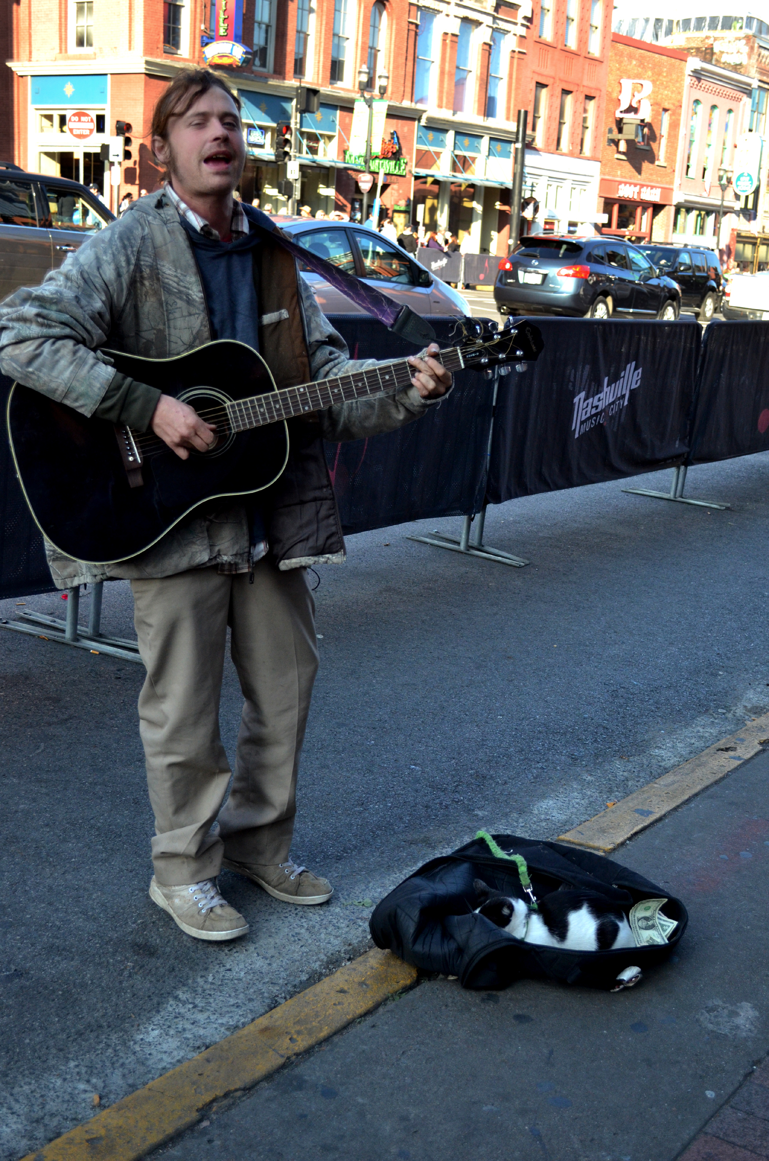 After Hatch we walked around the Country Music Hall of Fame lobby, did a little more shopping in the gift shop, grabbed a drink, and listened to some live music while we took a second to uploaded a few pics to Twitter and Facebook. We decided we’d do the Hall of Fame tour another time and headed back outdoors to explore downtown some more. Saw lots of street musicians (this one had his cat with him- no way I could do that with Lex), walked through the candy shop, and just kinda people watched.
