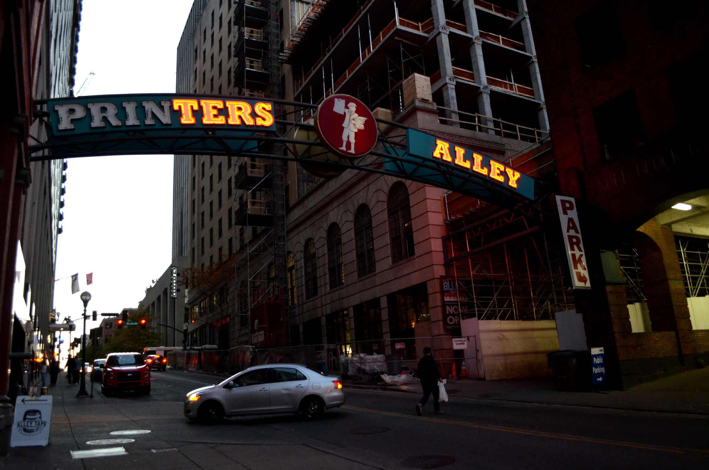 After dinner we walked past Printers Alley and around the corner back to Broadway. Printers Alley is more like Bourbon Street or Beale Street these days, but at one time was a haven for numerous printing companies in Nashville. The printers are gone, but the name remains.