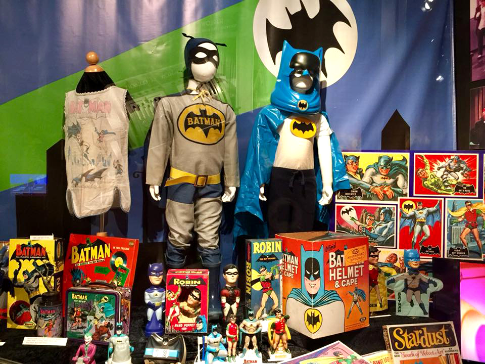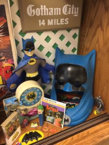 One of the first displays I noticed when we entered the exhibit was across the room and was filled with bat-toys, costumes, and other collectibles… it was guano heaven!