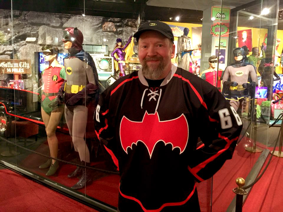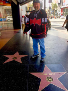 This past spring I got to go to Hollywood for the weekend. My wife Nicki was in Beverly Hills on a business trip for a week, and I flew out later that week on a Thursday and stayed through Monday. While I was there I got to check out the “Batman ’66” exhibit “Holy Hollywood History!” at the Hollywood Museum. The exhibit was organised by Roger Neal (Burt Ward’s publicist) and special guest curator Wally Wingert. Wally is a Bat-fan extraordinaire and voice actor who can be heard on the latest Batman ’66 animated movies (“Huzzah! Huzzah!“) and several of the Batman video games.