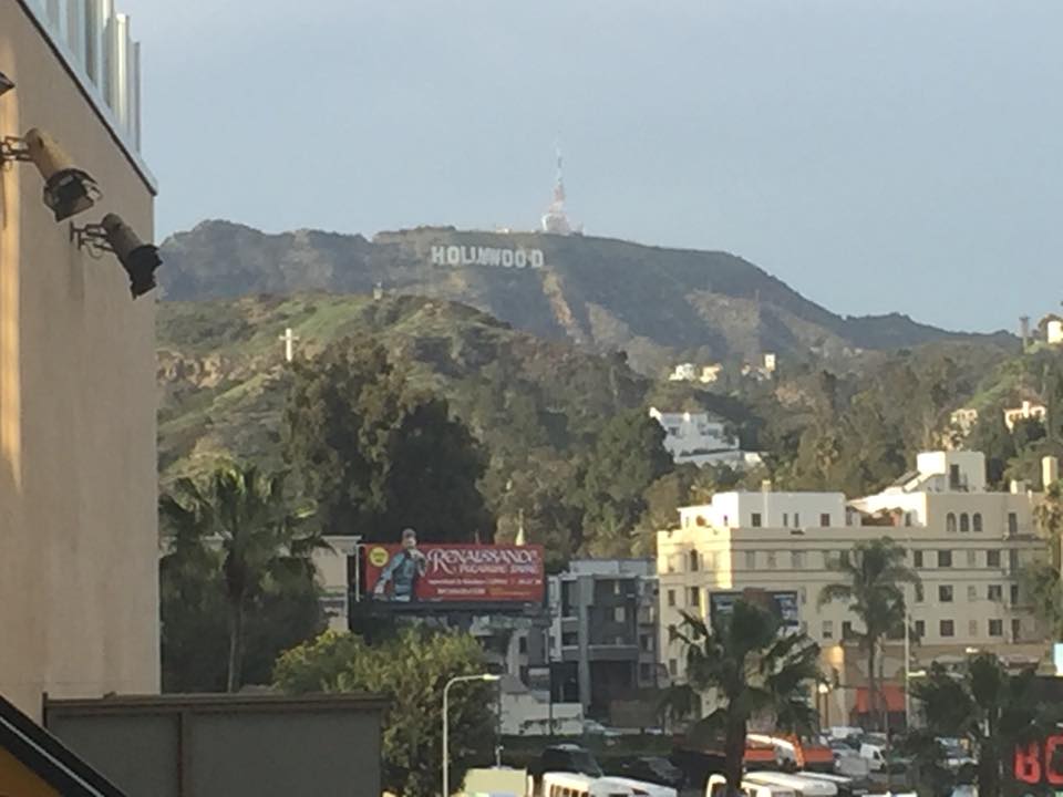 I was a bit leery to get into a car with a stranger, and traffic in L.A. is definitely an adventure all to itself! We chatted with our driver while doing more sightseeing along the way, and I felt a bit more at ease the more we drove. We made it safely to our hotel. You could see the HOLLYWOOD sign from the front of it as we drove up, and we saw there was a big outdoor mall within walking distance. When we first walked into the hotel there was a Morgan Freeman replica in the lobby (from Madame Tussauds) which took us by surprise and kind of freaked me out.