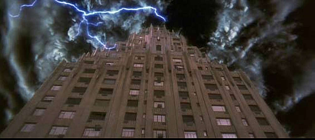 The Gozer temple above the penthouse apartment and extra floors (as well as a gargoyle or two) were added with special effects. In the movie Dana and Louis live on the 22nd floor (Dana’s apartment is 2206, Louis’ is 2202).