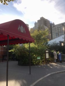 After spotting a snack cart, we got a pretzel and some water, took a breather while doing some people watching, and then headed off to find Tavern On The Green. It wasn’t too far of a walk from where we had stopped to eat and rest. It was a bit off the main road we were walking on but fairly easy to find.