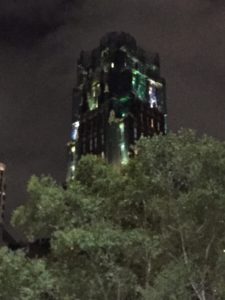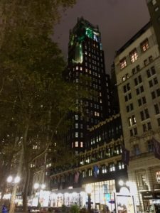 While walking around the library, we spotted this spooky building from Bryant Park (see my Library blog post to learn more about it and the surrounding Bryant Park). This building on 5th Avenue wasn’t 1 Fifth Avenue, but would have worked well, too! It also would have made more sense why Louis was walking around Times Square– it’s just around the corner..!