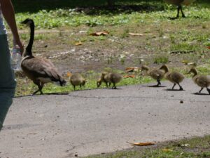 Lots of wildlife around including ducks, fish, and I really loved seeing all the families of geese walking through the park.