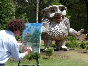 There were also members of the Memphis Urban Sketchers art group who were not only drawing at the event, but one of them, artist Erik Pena was even dressed up as Bob Ross and painting the first troll we came across.
