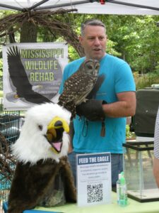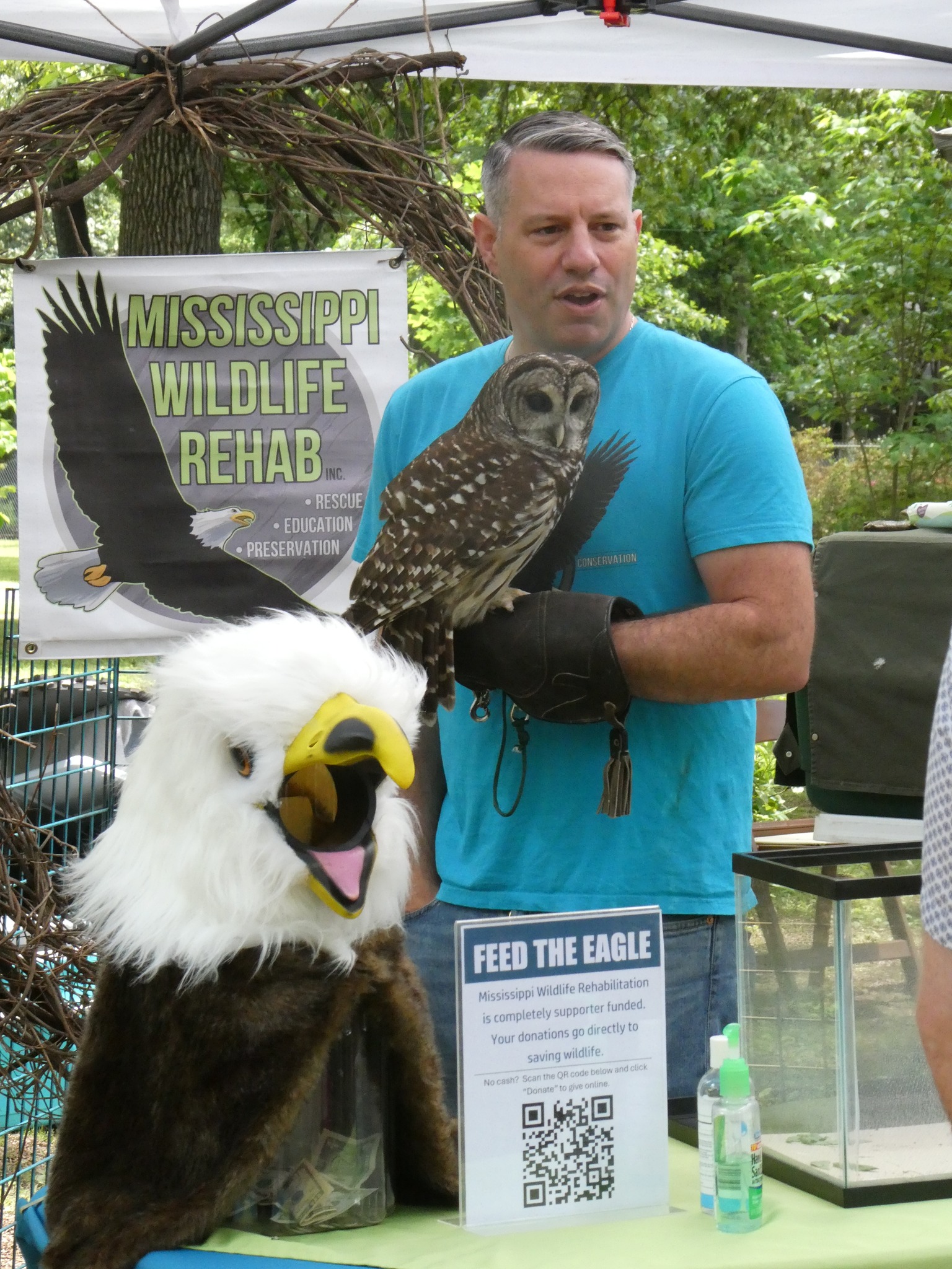 There were also several booths set up to promote local groups, other events, and share information on nature. Mississippi Wildlife Rehab were there with live rescued animals that can’t be returned to the wild, and the Girl Scouts were there to earn merit badges by giving out free tree saplings.