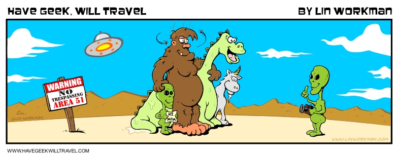 Mythical Beasts And Where To Find Them… Feb09 by Lin on February 9, 2022 at 10:26 am └ Tags: aliens, Area 51, Bigfoot, geek travel blog, Geeker, Have Geek Will Travel, Lin Workman, Loch Ness Monster, Roswell, UFO, unicorn, web comic Related Comics ¬ Original Ghostbusters The Adventures of Superkid- pt2 Collecting Guano The Adventures of Superkid- pt4 2016- the year of “Kick Me”