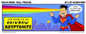 The Effects Of Rainbow Kryptonite Jun07 by Lin on June 7, 2018 at 11:43 pm Chapter: Comics └ Tags: Have Geek Will Travel, kryptonite, Lin Workman, Metropolis Superman Celebration, Pride Month, Skittles Pox, Superman, The Effects Of Rainbow Kryptonite, web comic Related Comics ¬ Snikity-Snikt! Tonight, A Comedian Died In New York The Adventures of Superkid- pt2 “I Can’t Warp-Drive 5.5!” Back To The Movies
