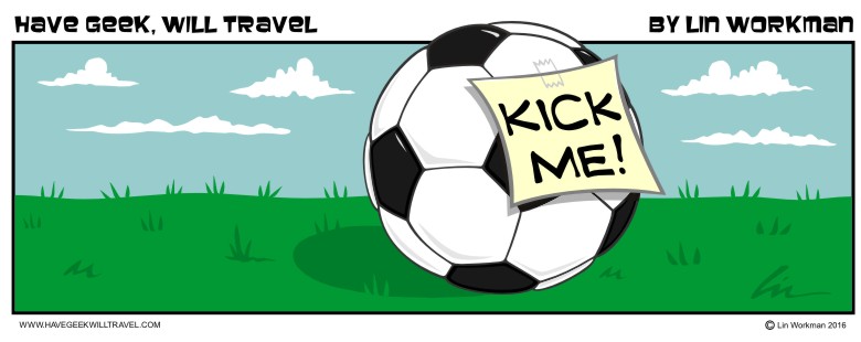 2016- the year of “Kick Me” Nov20 by Lin on November 20, 2016 at 11:33 am Chapter: Comics └ Tags: 2016, geek travel blog, Geeker, Have Geek Will Travel, kick me, Lin Workman, soccer. soccer ball, web comic Comment